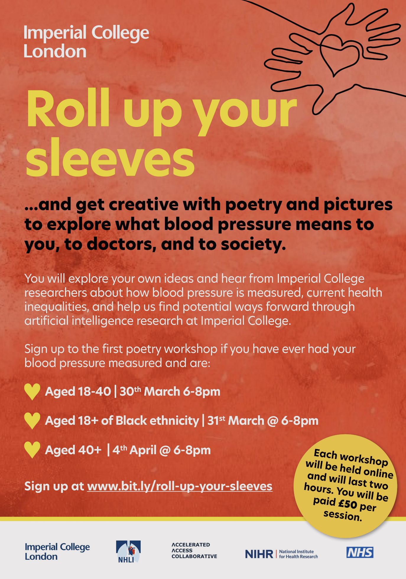 Image: ‘Roll up your sleeves flyer’ and ‘ illustration of a blood pressure examination’